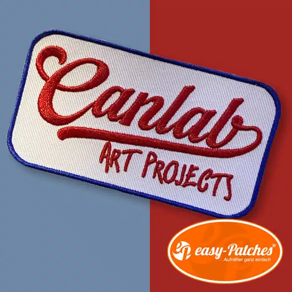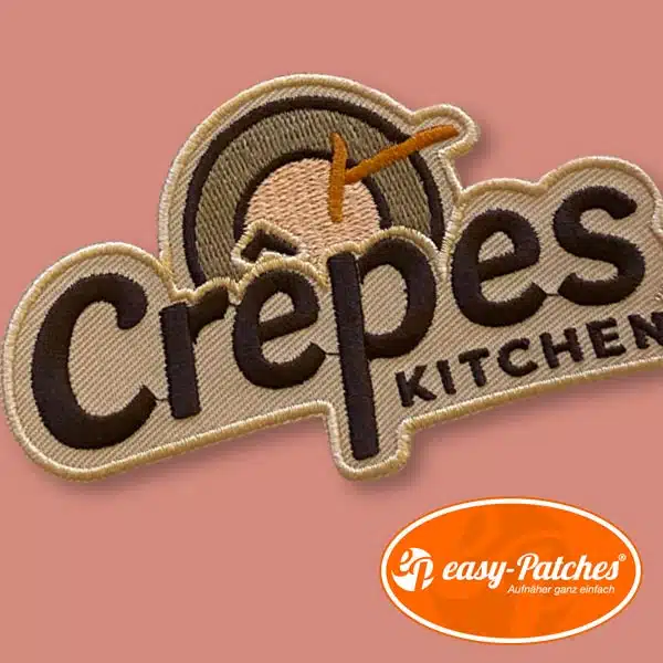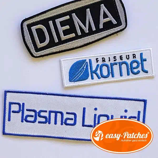 Ihr Motiv/Design/Text wird auf einen s.g. Untergrundstoff aufgestickt und hat eine erhabene Struktur. Sie sind in jeder Form und mit einem Kettelrand, Lasercut oder gestickten Rand erhältlich. Zusatzoptionen wie Bügelfläche oder Klett runden die Möglichkeiten ab.